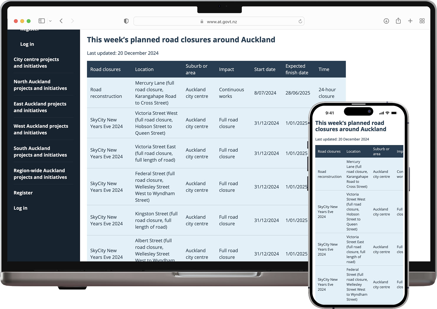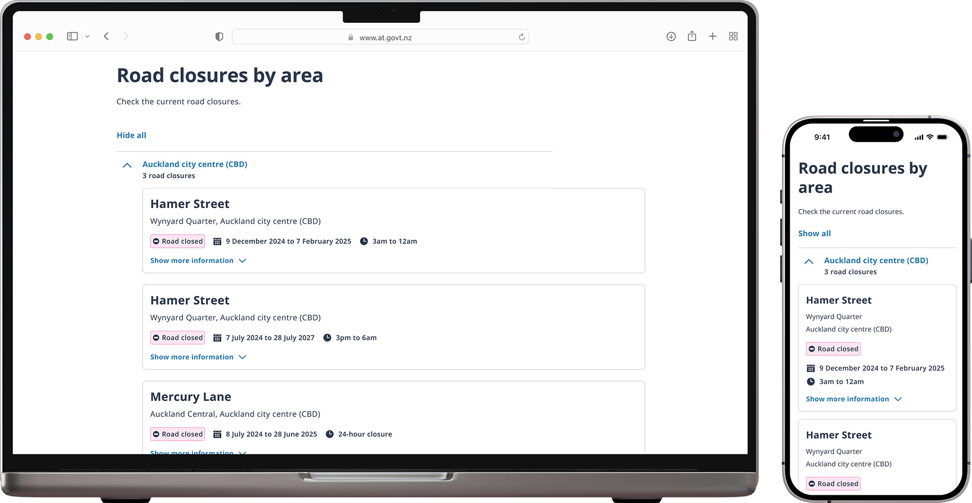 The previous version listed all closures in one giant table, which most users found extremely hard to navigate and find the information they needed.