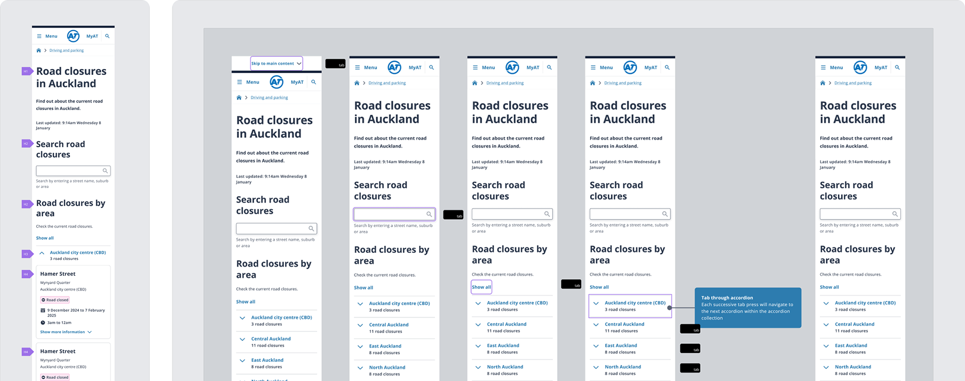 Annotation was included as part of the handover phase, which including heading hierarchy, screen reader specific copy and tab order.